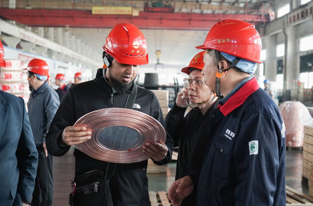馬來西亞政府訪問團在實際考察后,了解了宏泰的發展實力及生產銅管的優勢,對宏泰公司和產品給予了充分的肯定,并表現出濃厚的興趣,盛情邀請公司高層到馬來西亞參觀考察,雙方就未來合作進行了深入溝通交流。